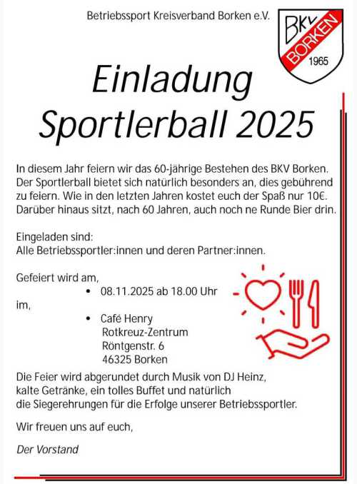 Die diesjährige Hauptversammlung findet am Montag, den 17.03.2025, um 19.30 h in der Gaststätte Fliederbusch in Borken, Hohe Oststraße statt.